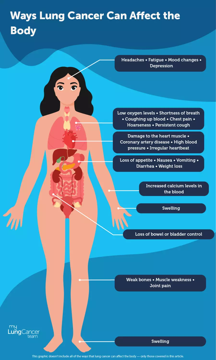 Lung cancer can affect more than just the lungs. In fact, sometimes, the most noticeable symptoms have nothing to do with the lungs. People with lung cancer should know how the condition can affect different parts of the body. That way, they can spot problems early.